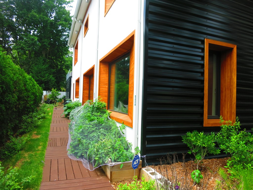 Windows of 53% solar heat gain coefficient- naturally unshaded in Heating season from building positioning + fall of deciduous trees.